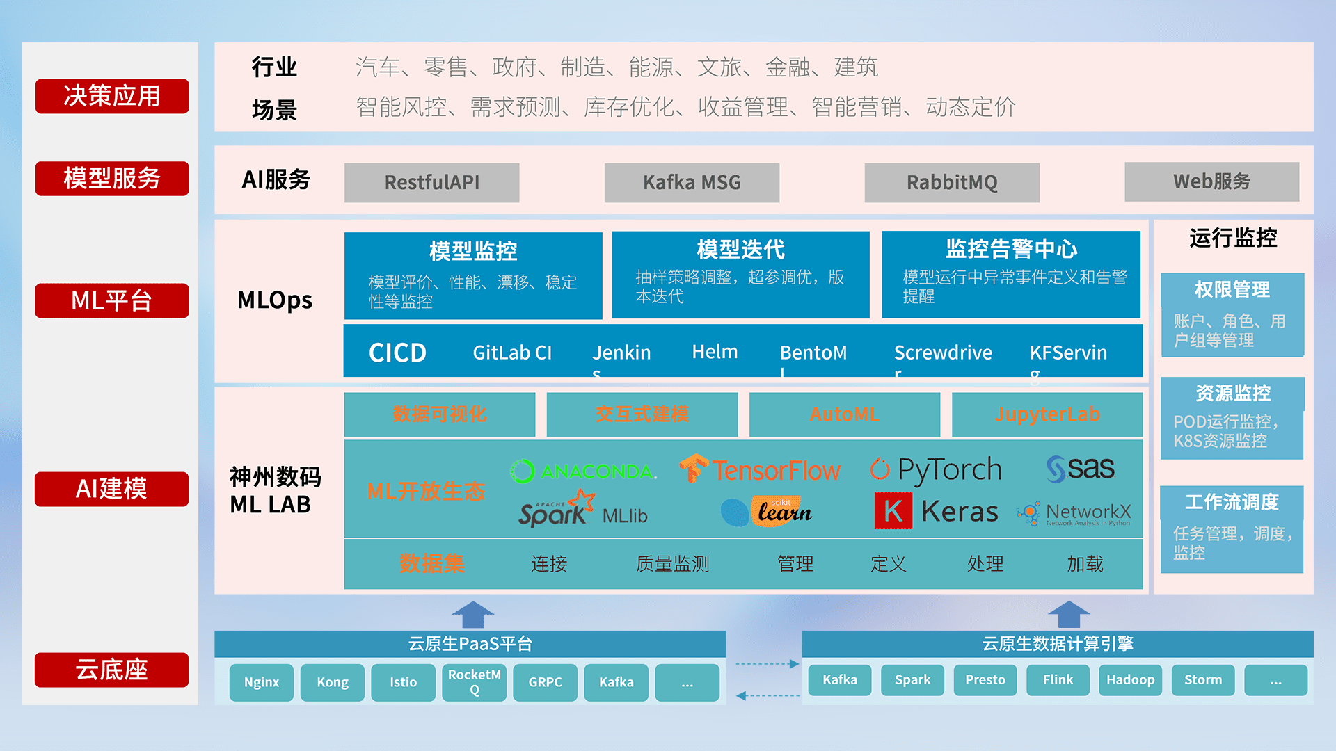 数据+模型双引擎驱动,,,,面向智能服务场景,,,,快速灵活利用AI技术,,支持业务决策,,,,助力企业智能化转型破局。。